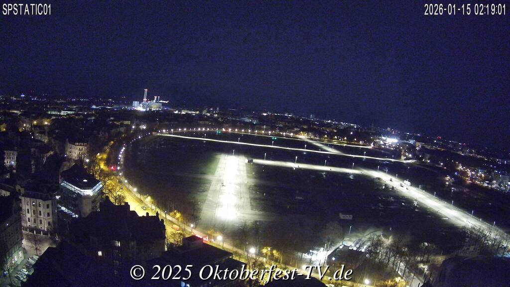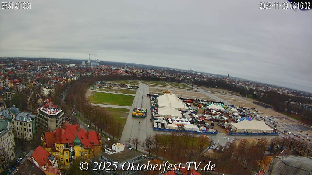 Unsere Webcam hat von der Paulskirche am nördlichen Rand der Theresienwiese einen umfassenden Blick auf das Festgelände. Mit unserer feststehenden Webcam können sie von oben das Festgeschehen auf dem Oktoberfest beobachten.